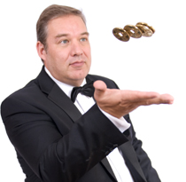 He then showed us a coin routine where he wasn’t one ahead but two ahead and also a ring to necklace.