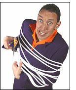 involves the use of three spectators, lots of stupid games, prizes and three